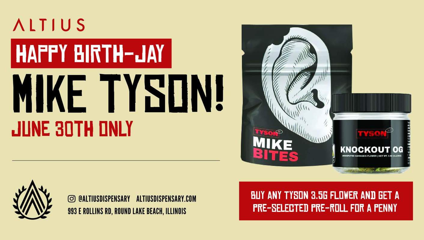 Purchase any Tyson 3.5g flower & get a pre-selected pre-roll for a penny!