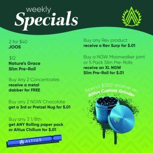 BUY ANY 3 1/8TH get ANY Rolling paper pack or Altius Chillum for .01